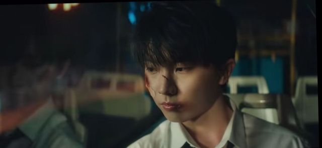 他拎着断了的吉他放学回到家,他还沉浸在与你重逢的喜悦中,可回到家就像是回到了人间炼狱一般,他的父亲喝醉了酒因为断了的吉他就把他打了一顿,他的继母,就是他们口中的那个小三,领着他的孩子在一旁看热闹,他也被赶了出来