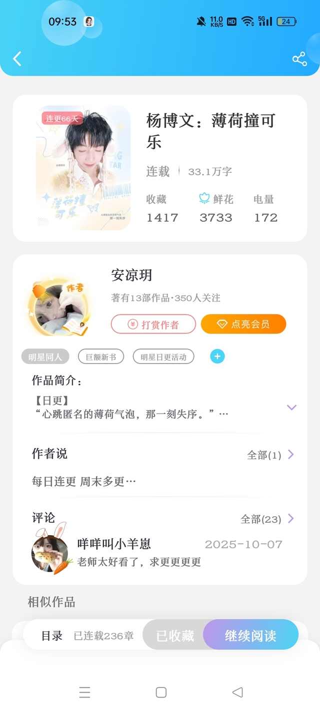 T^T目前就不要打赏春雨了好吗 作为一点小歉意给大家推推隔壁的《薄荷撞可乐》