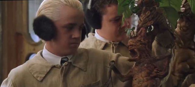 斯普劳特教授大家都戴上了耳罩便示意大家看她,然后抱过一盆曼德拉草,揪住它的叶子把它拔了出来