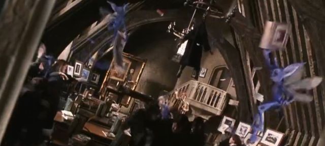 洛哈特拿着魔杖念道,但一点用都没有,小精灵趁机抢走了他的魔杖丢出窗外,加布里埃狠狠的皱起眉头,和德拉科几人一起冲出教室
