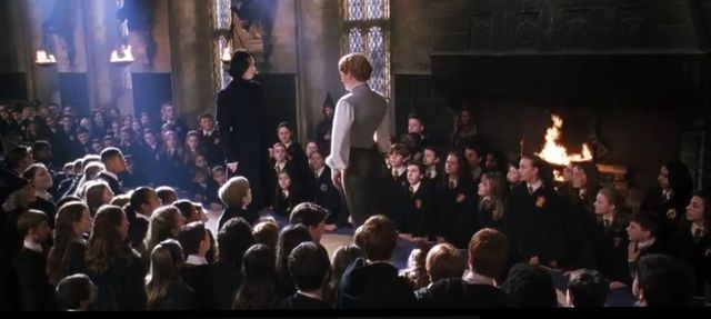 洛哈特尴尬的朝下面的学生一一望去,最后目光停留在哈利和罗恩身上