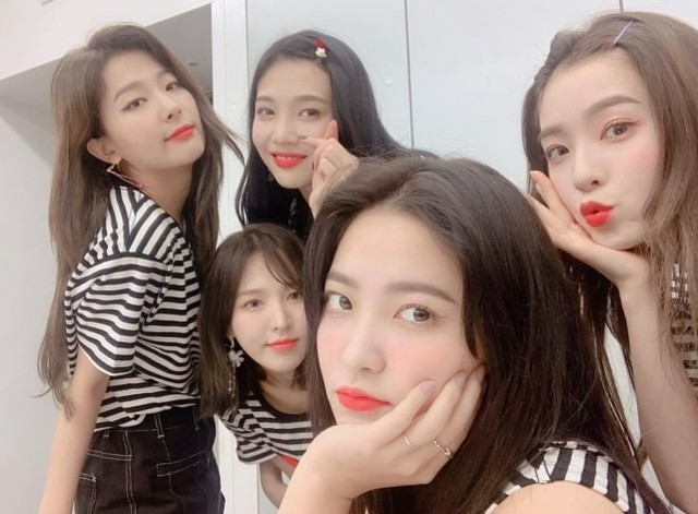 于是雅然就和姐姐们一起去现场庆祝师妹Red Velvet的成功出道!