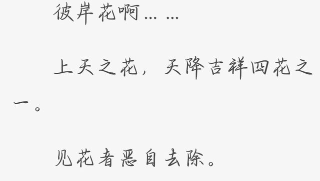 不知道你们那眼中的彼岸花是什么样子的呢,我看到的彼岸花是我写的那个样子: