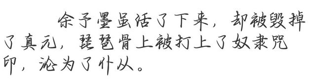 这个世界的余予墨如上图所言,只是被毁掉了真元,后面季初眠用自己的能力帮他修复了灵根,让他可以重新修炼。