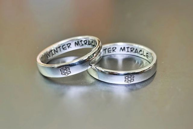 因为两人都是台球运动员,戒指不能太夸张,否则会影响推杆,林亦扬就要求定制的戒指外侧带有雪花的图案,两人的英文名字也刻在戒指内侧