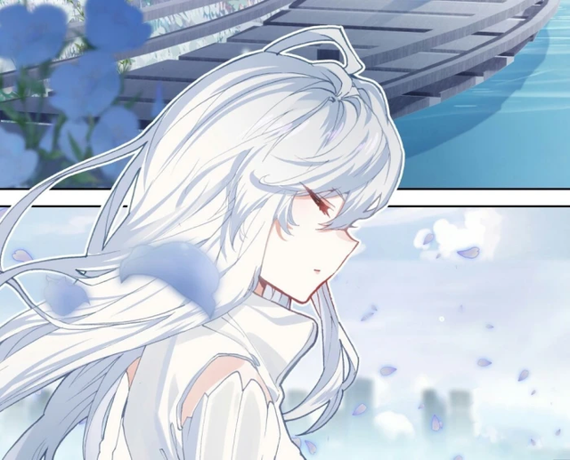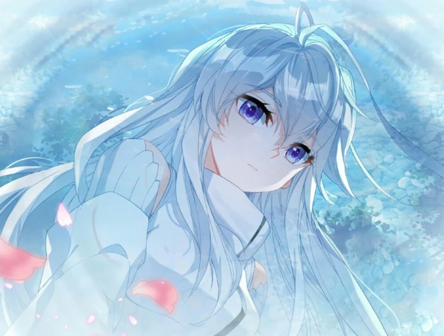 微风轻轻拂过,她那一泻千里的银色秀发犹如瀑布般在空中舞动,宛如月光下的灵动诗篇。
