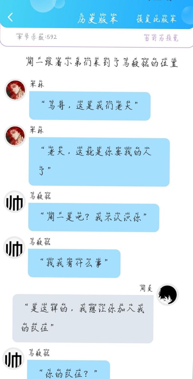 零林😭😭大家好,我也发现了一个功能可以恢复我之前的创作内容,可是我现在已经创作到800字了,真的是服了