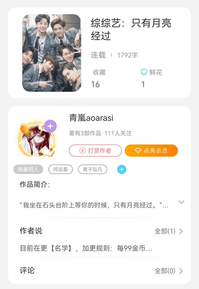 诈尸一下,目前在更《综综艺:只有月亮经过》的名学卷,等名学密神的内容更完就会循序渐进地更跳地。