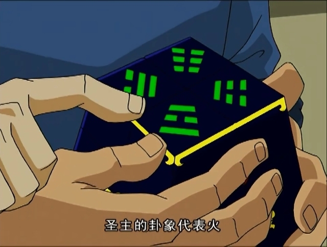 老爹(指着圣主的卦象)圣主的卦象代表火,两边是长线、中间是短线!