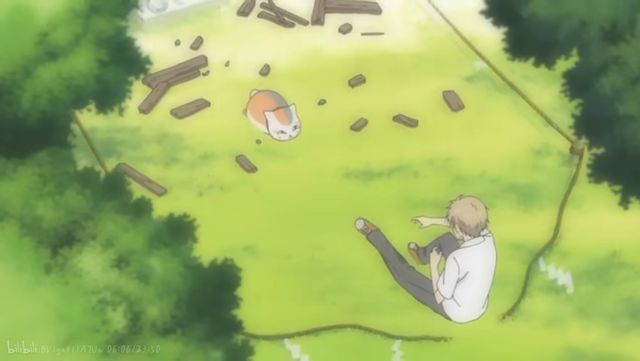 感受到自由的夏目顾不得其他继续向神社跑去,刚进入到神社门口却被一个绳子绊了一跤摔倒在地。