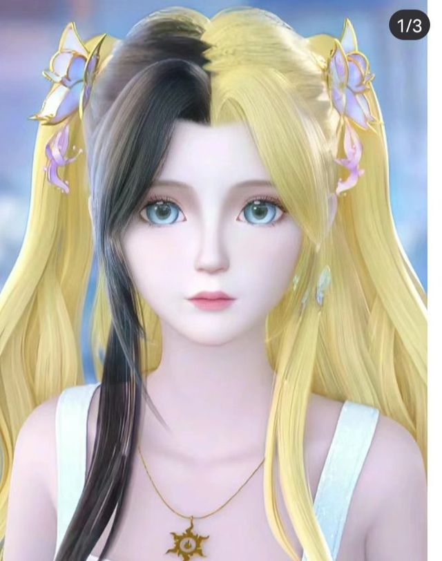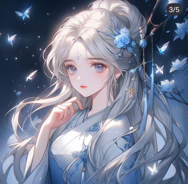 雪清月(王默)有时候是银白色的头发,有时候是蓝色头发,有时候是紫色头发