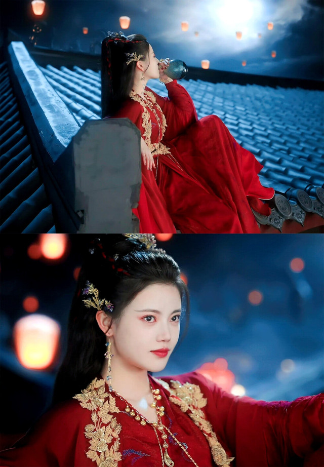 梳着像狐狸耳的双螺垂髻上点缀着金色、红色等漂亮的发饰、珠花轻轻颤动。