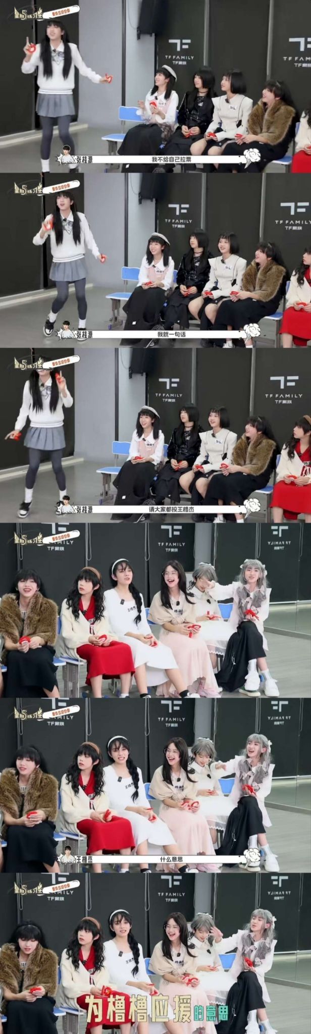 临时补充:穆楠祎坐在王橹杰旁边,因为沙发不够坐所以给穆楠祎单独一个小板凳
