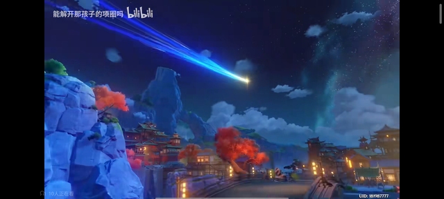 【紧接着,那两颗星从高空划过,经过了璃月港,又从西风大教堂风神神像划过】