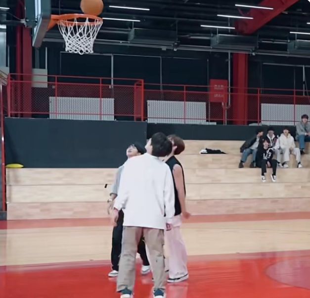 考虑到穆祉丞和张泽禹是新手,所以公平起见让他们二打一,高一其他人这个时候也不太想回去,听张泽禹要打篮球也就一起下去看看去。