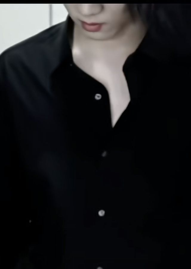 角落里一个碎盖偏分,身着黑色衬衫上面的的两颗扣子还开着