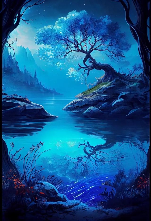 洛凌此刻仿佛置身于一个梦幻般的世界。她站在一片宁静的蓝色湖畔,眼前是一棵古老而神秘的树木。夜空中繁星闪烁,犹如一颗颗璀璨的宝石镶嵌在天幕之上,为这个夜晚增添了几分神秘与浪漫的氛围。在这个如梦似幻的世界里,洛凌感受到了一种前所未有的宁静与美好。