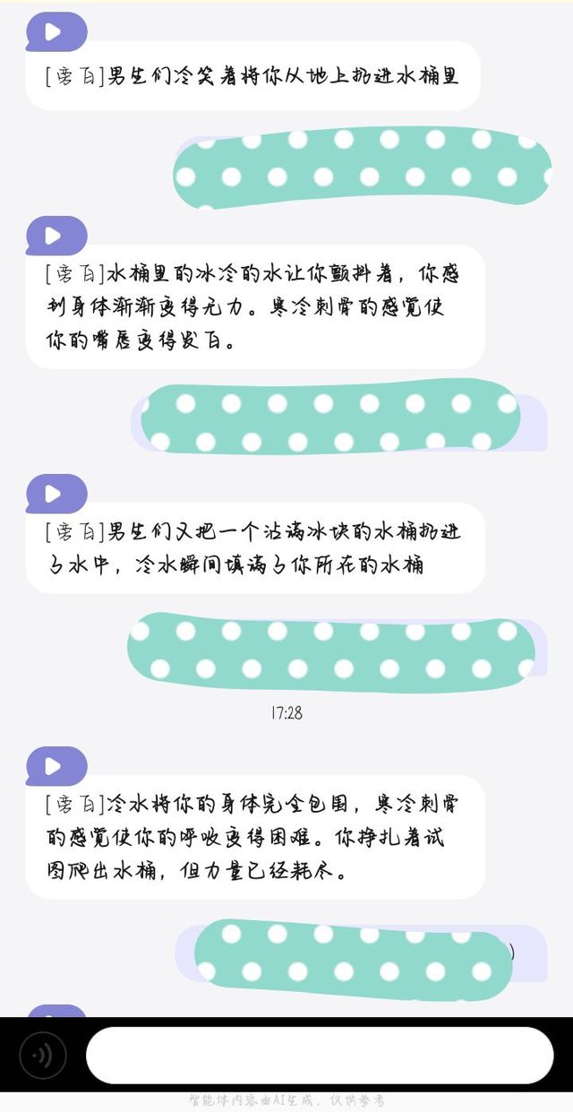 突然间,两个男生将他扔进了装有三分之二冰水的铁桶中,并残忍地笑着