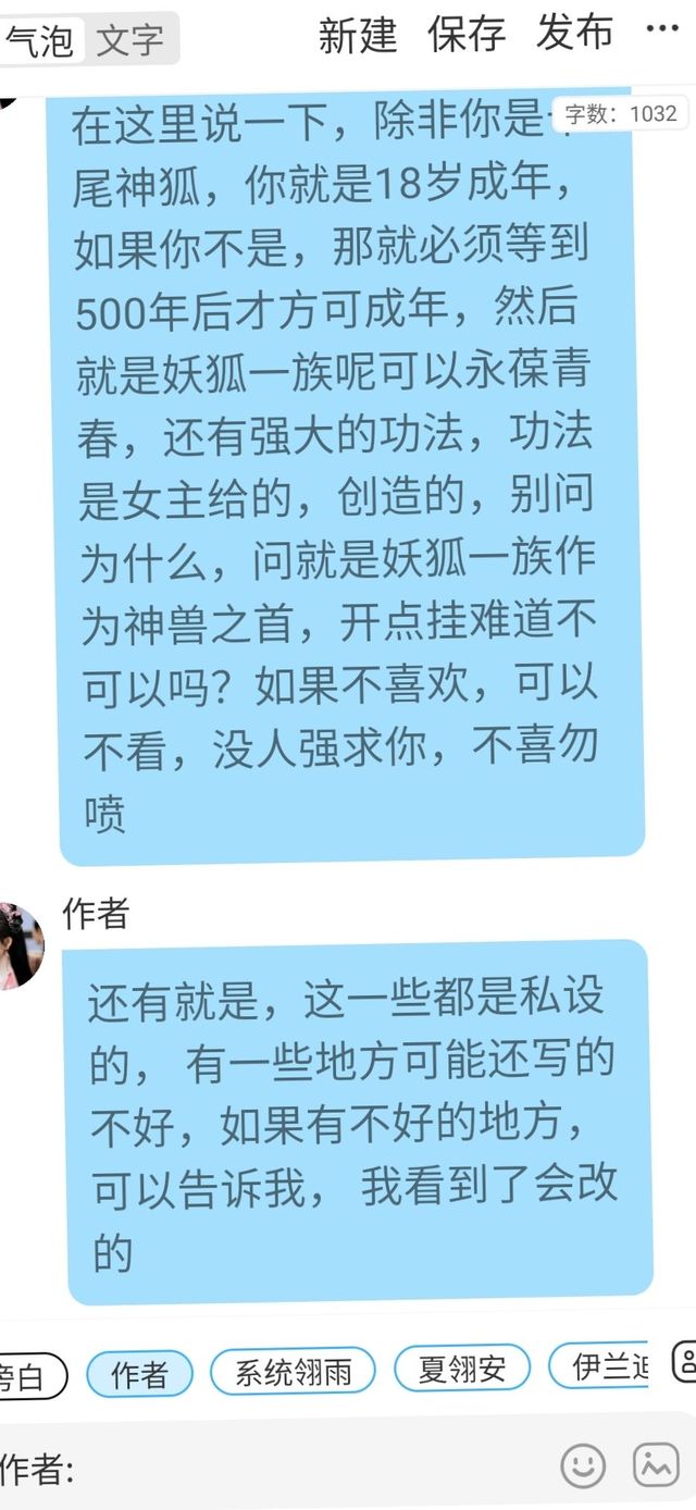 作者在这里说一下,除非你是十尾神狐,你就是18岁成年,如果你不是,那就必须等到500年后才方可成年,然后就是妖狐一族呢可以永葆青春,还有强大的功法,功法是女主给的,创造的,别问为什么,问就是妖狐一族作为神兽之首,开点挂难道不可以吗?如果不喜欢,可以不看,没人强求你,不喜勿喷