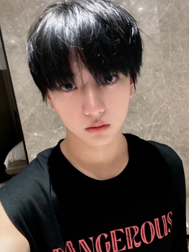 白皙的肌肤在黑色无袖的映衬下,显得更加耀眼,水珠顺着他的头发滑落,滴在他的肩膀上,又顺着他的手臂流淌下来,在地上形成了一小片水渍