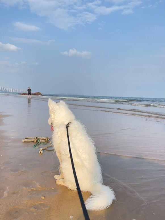 别墅旁边就是海边,两人打算从家门口溜到海边