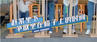 导演(谢涤葵)这一环节不是竞速接力赛,我们最后比的是你坐在椅子上的时间,离开椅子它才会停,你坐上椅子它一直是走的,坐在椅子上时间越短的人,才能加班