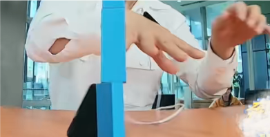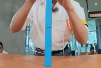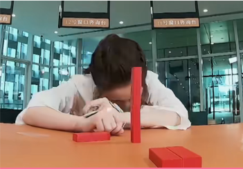 导演(谢涤葵)第二项任务就是把积木垒起来