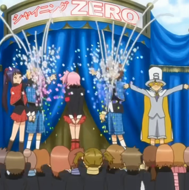 江崎麻由美各位公主王子以及我的粉丝们谢谢你们前来圣夜学园的皇室花园观看我的演唱会和shiningzero的魔术表演~现在我来介绍一下这位shiningzero的真实身份其实就是大家之前看的节目的zero哦zero因为被经纪人压迫不能自由自在的使用自己喜爱的魔术所以节目中都是经纪人要求的CG技术合成的他对此也感到很抱歉过意不去的说~他现在已经成功签了解约书彻底摆脱经纪人了但是这也意味着他要重新开始了所以我们才特地为了zero举办了这个活动希望大家都能支持zero真的非常感谢~✿✿ヽ(°▽°)ノ✿