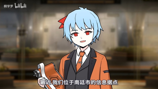 在屏幕上面,一个蓝色头发,红色眼睛,身穿一身橙灰相间服饰的人出现了。
