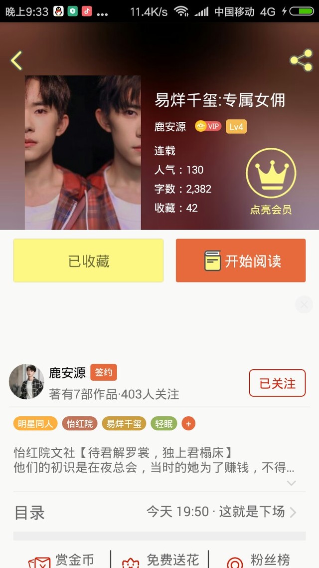 作者鹿安源《易烊千玺:专属女佣》多多支持