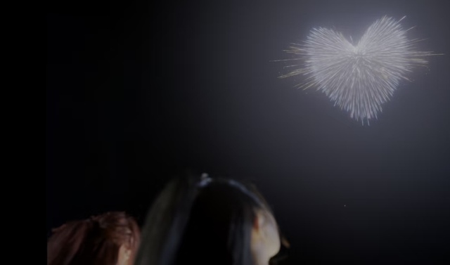 辣目听后十分高兴,随后再次化出一个大火团扔向了空中,那火团在空中绽放,竟形成了一个心形的烟花。