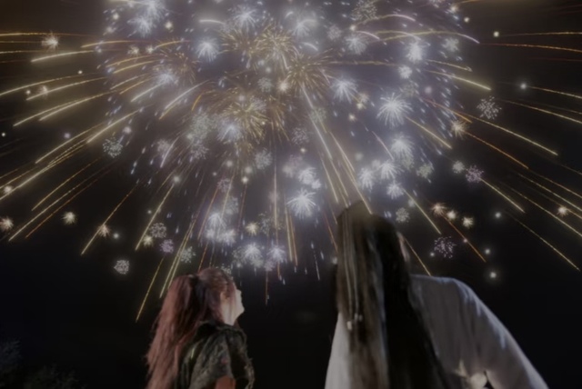 辣目和夜昙相视一笑都看着空中的烟花,只是没想到辣目将这烟花放得太多了,变成了无数个火星坠落了下来,辣目害怕得连忙用手挡在夜昙的头上,害怕她受到伤害