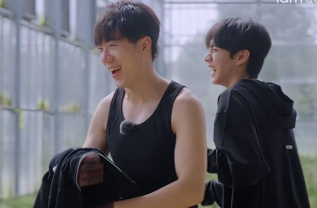 鹭卓也配合着赵一博的高呼,秀起了自己的肌肉,引得赵一博发笑,边笑变凑近轻推着鹭卓的肌肉。