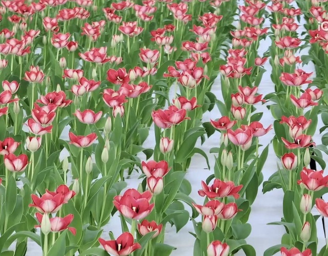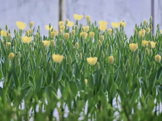 前两天大家都分好了组,售卖当天,1256四人率先走进大棚,棚里的水培郁金香基本上都展开了花瓣,五颜六色的,好不唯美。
