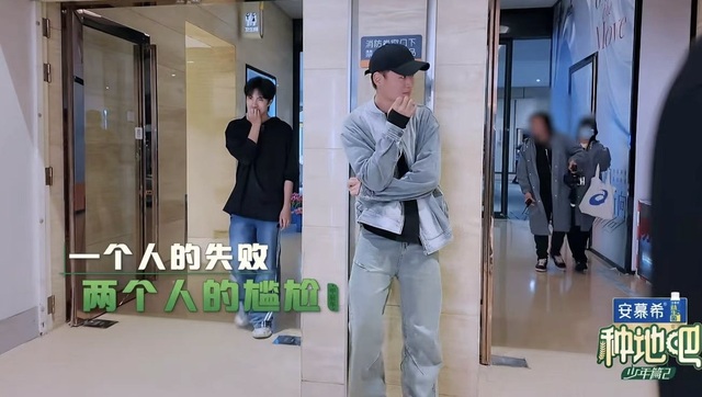 赵一博刚小声回了个好,看到有人经过,陈少熙立马捂嘴回头,不看路人,而赵一博也是默默笑着移开了视线,见人走了,也开始嘲笑起来了。