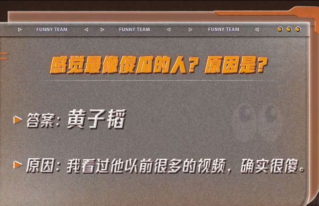 【小巧妹妹】:在录制之前,我们也给到各位探员发出了一些问题,并收集到了探员的答案,我调研,我们选出了每个问题最有趣的答案,那么接下来请探员们回答出,这个答案的主人是谁。