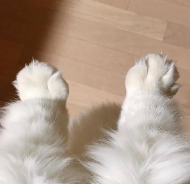 茶茶举着爪子,撑在地上想坐起来