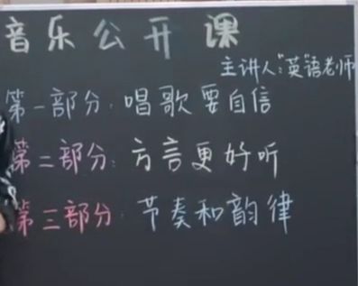 第一节公开课是由一位名叫"英"的英语老师带领的音乐课程。她详细地向大家讲解了音乐的三个关键组成部分,并且针对每个部分,她都邀请了两位来自表演社和音乐社的学生进行现场演示,以便于同学们更深入地理解和感受这些部分的重要性