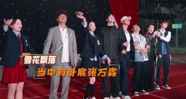 在一分钟的倒计时结束后,导演要求他们表演一个场景,重现张万森遭遇雪天的情景。如果此时真的有雪花从天而降,那就意味着他们的队伍中隐藏着一名名叫张万森的卧底。当指令下达完毕,天空仿佛回应一般,雪花开始纷纷扬扬地飘落下来