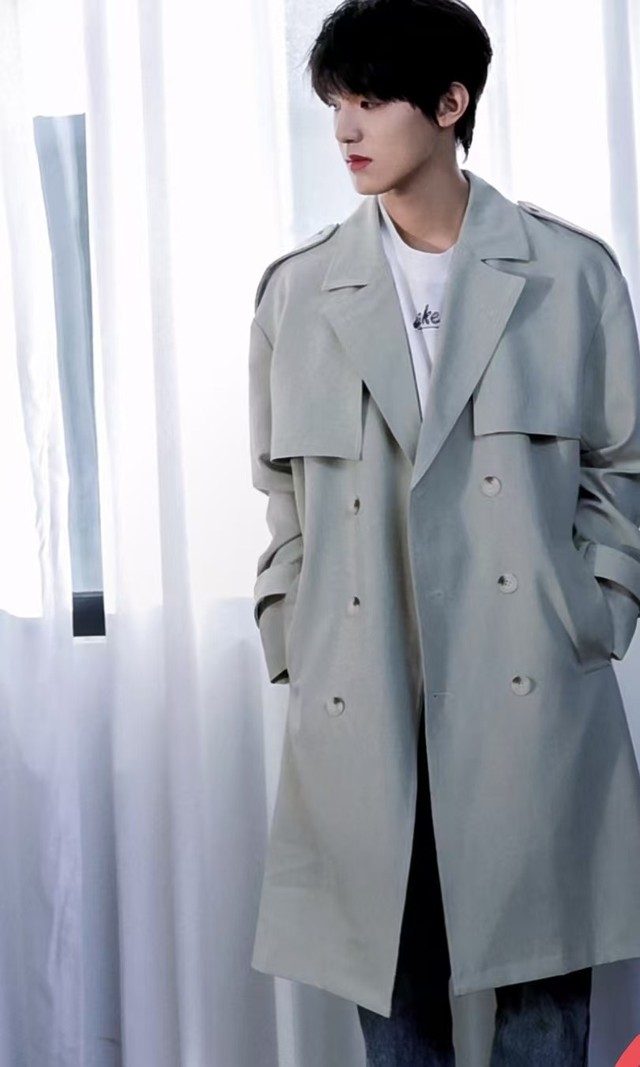 他今天穿了修身的大衣,不显得太庄重死板,也不会太随意