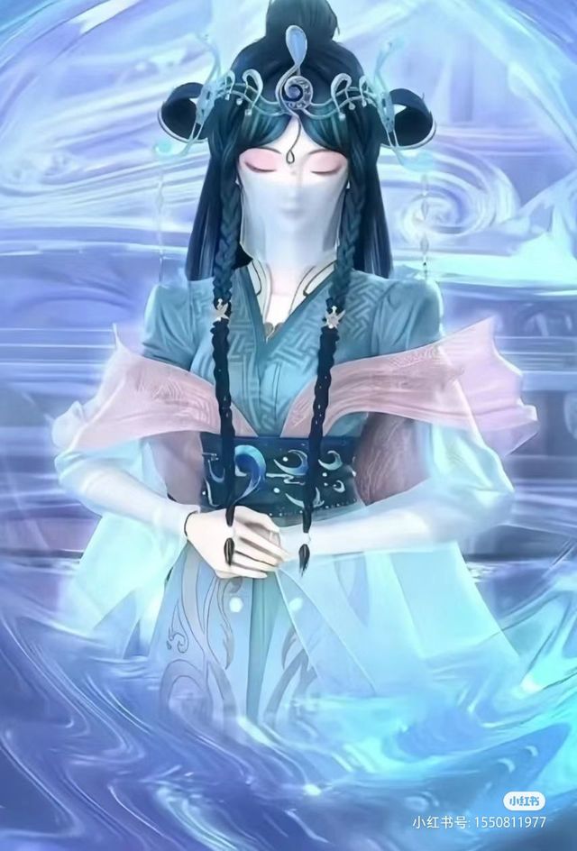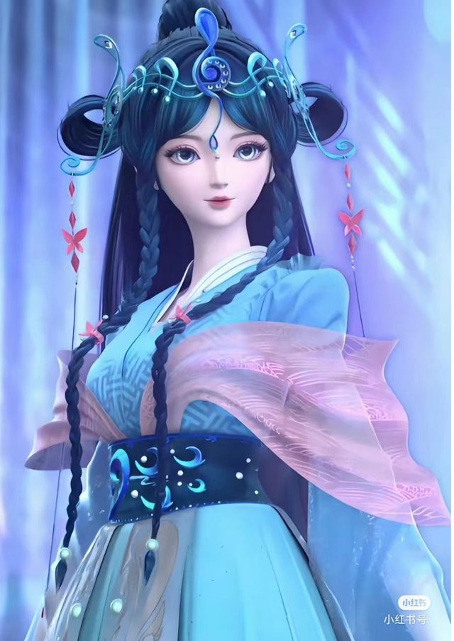 银尘,这个名字仿佛就是为她而生,银色的长发如瀑布般垂落,编织成麻花辫 ,阳光下,她的肌肤如同最上等的羊脂玉,细腻柔嫩。蓝紫色的眼眸深邃而冷漠,仿佛能洞察一切,却又拒人千里之外。蓝色的发饰映衬着她高贵的气质,犹如青云遮月,又似风中飞舞的雪花,清冷而脱俗。她鼻梁挺拔,朱唇微启,仿佛在诉说着无尽的故事。额间的月亮型图案和眉心处的银色宝石,更增添了几分神秘和高冷。她身着一袭缀满银色亮片的长裙,轻盈飘逸,双臂被轻薄的纱衣覆盖,若隐若现,更显神秘莫测。