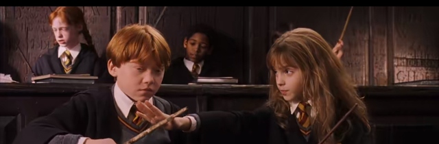 “你说错了!罗恩!”赫敏一脸嫌弃地看着正在“施魔法“的韦斯莱。