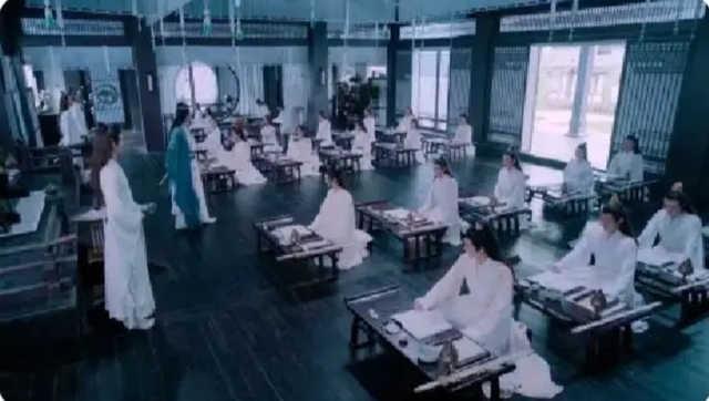 蓝启仁坐在上方首位,声音低沉浑厚,缓缓说讲。