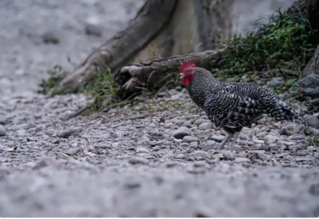 那声鸡鸣显然你也听到了,视线直直的往那只鸡身上扫。