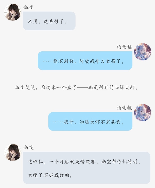 秉持着不能让男朋友饿到的理念,杨素桃最终还是又炒了两个菜——单独给幽夜的。