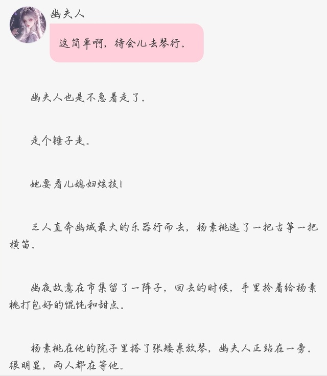 幽夫人好了,琴弹完了,你们也去休息吧。尤其是你,素桃,刚才都没怎么吃。
