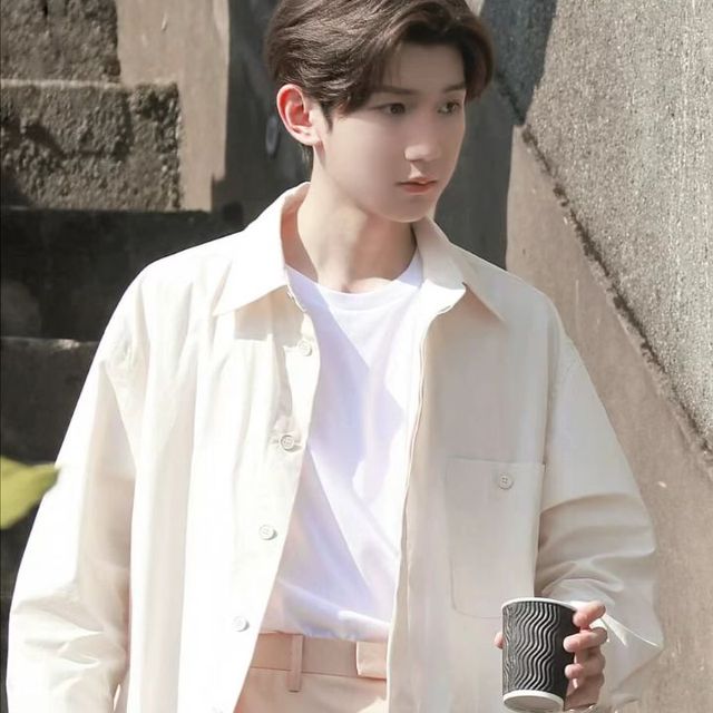王俊凯正系着扣子,看见小姑娘一身粉粉嫩嫩的出来,手下一停