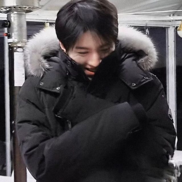 拍完以后,王俊凯裹紧衣服笑着