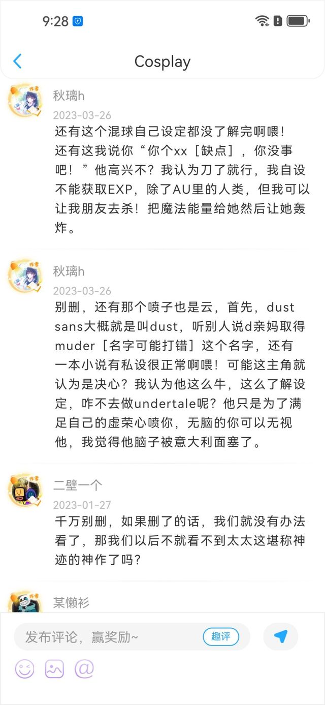TWO(作者)他就算喷,我写的全是自设骨(除了murber的救赎),我只需要保证不把骨设写崩,他就没有可以喷我的了