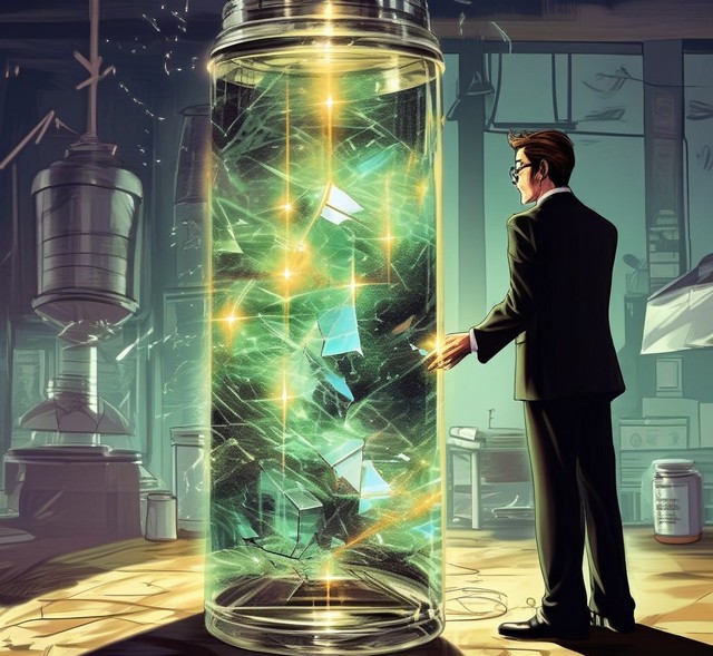 大老板重新回过头去,眺望着玻璃罐中发出微光的能量碎片。他的眼神中闪烁着疯狂和贪婪的光芒。